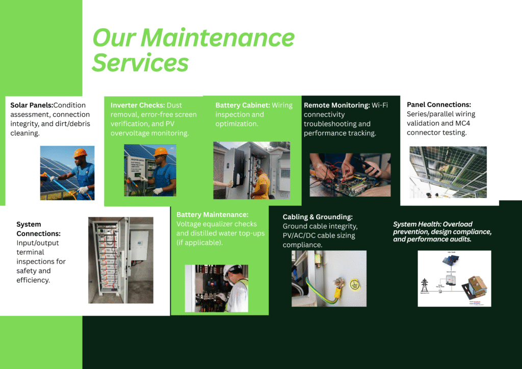 After completing all connections, we conduct thorough testing to ensure the system operates correctly. We check voltage output, inverter status, and energy flow. Once confirmed, the system is activated and ready for use.